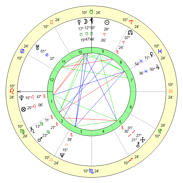 | Sun | 28 Aries 5 | 28 Aries 54 | 10 Cancer 13 |