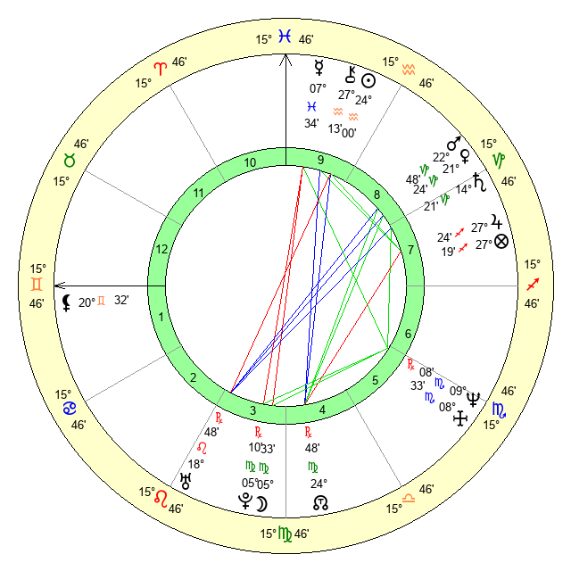 | Moon | 5 Virgo 37 | 8 Virgo 8 | 0 Aquarius 51 |