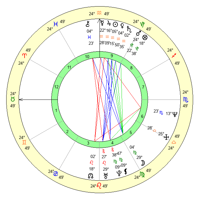 | Pluto | 9 Virgo 38 | 1 Aquarius 51 | 8 Virgo 6 |