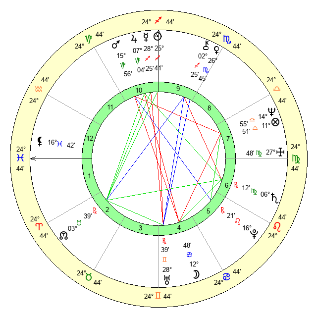 | Saturn | 6 Virgo 42 | 25 Pisces 24 | 2 Virgo 28 |