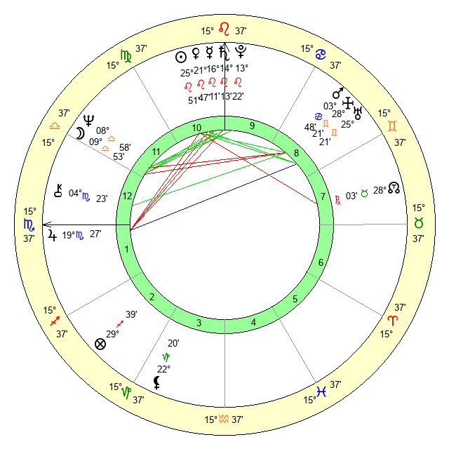 | Moon | 9 Libra 57 | 12 Cancer 33 | 12 Leo 15 |