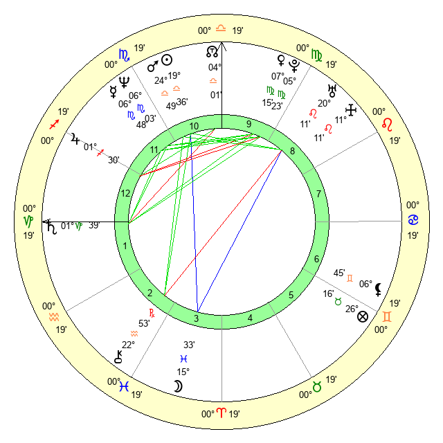 | Venus | 7 Virgo 15 | 29 Virgo 47 | 12 Scorpio 41 |