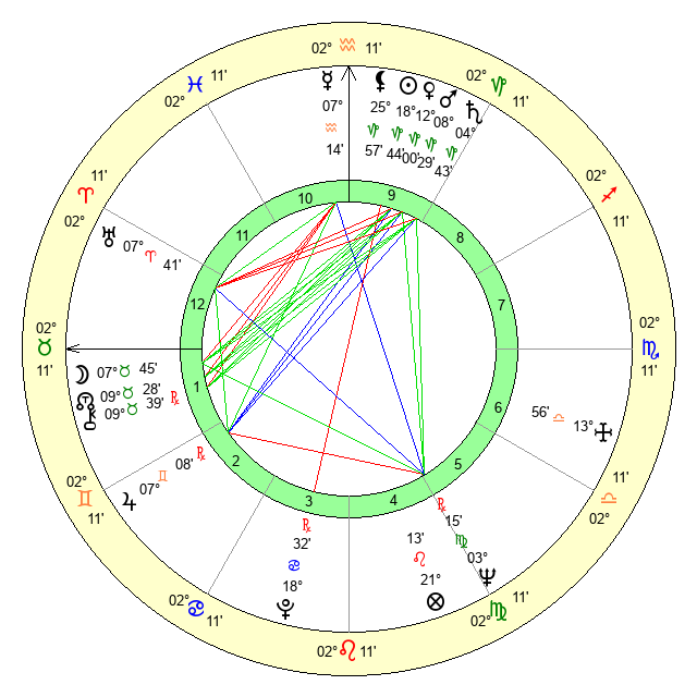 | Neptune | 3 Virgo 16 | 27 Pisces 26 | 1 Virgo 0 |