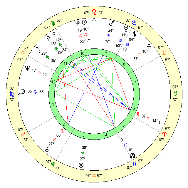 | Venus | 18 Virgo 4 | 11 Cancer 6 | 14 Virgo 9 |