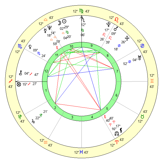 | Saturn | 12 Virgo 34 | 28 Pisces 16 | 19 Virgo 28 |