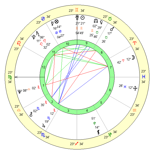 | Sun | 21 Gemini 50 | 22 Gemini 56 | 6 Virgo 28 |