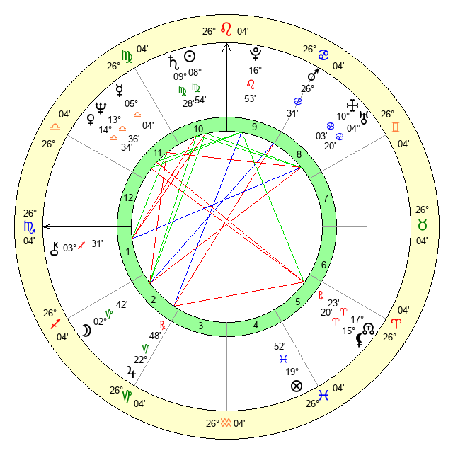 | Saturn | 9 Virgo 56 | 29 Pisces 51 | 18 Virgo 15 |