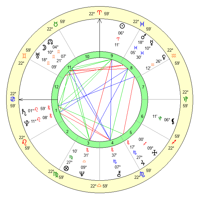 | Mars | 18 Pisces 6 | 22 Cancer 15 | 17 Taurus 27 |