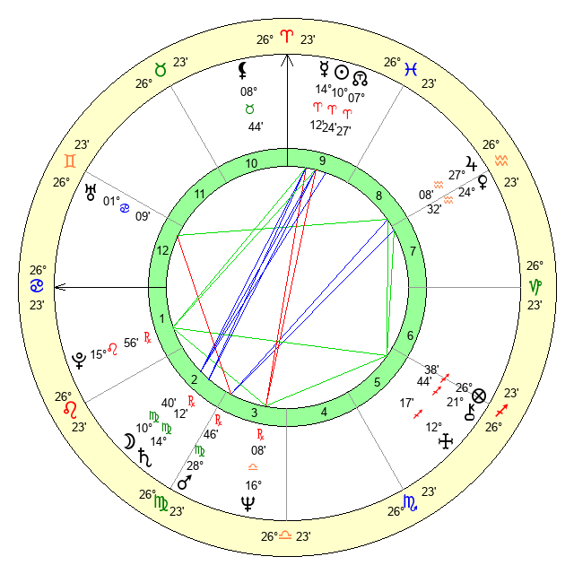 | Mars | 28 Virgo 45 | 23 Cancer 30 | 1 Libra 4 |