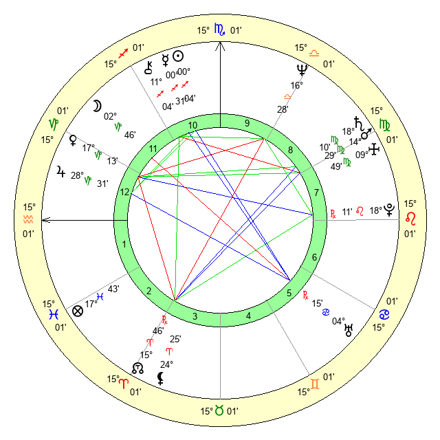 | Moon | 2 Capricorn 46 | 27 Sagittarius 9 | 6 Libra 48 |