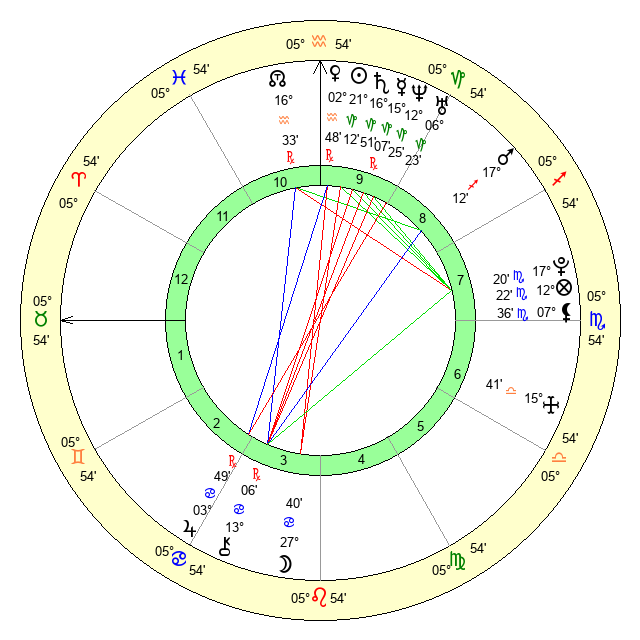 | Moon | 27 Cancer 39 | 23 Gemini 27 | 4 Scorpio 5 |