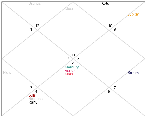 | Ketu | 4 Aquarius 6 | 19 Virgo 58 | 28 Capricorn 48 |
