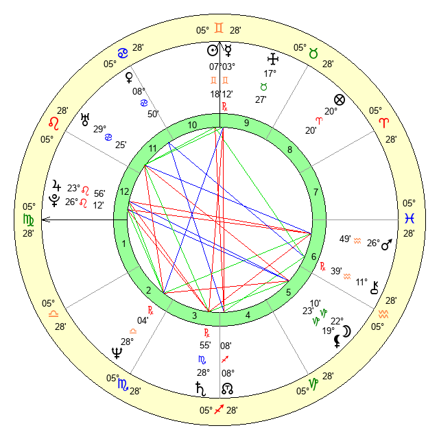 | Jupiter | 23 Leo 46 | 27 Gemini 16 | 5 Virgo 32 |