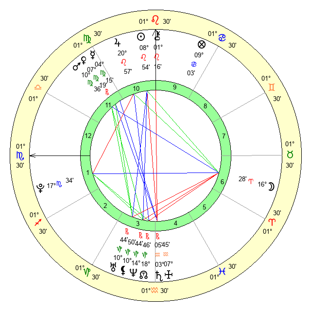 | Moon | 16 Aries 21 | 11 Scorpio 11 | 20 Cancer 7 |