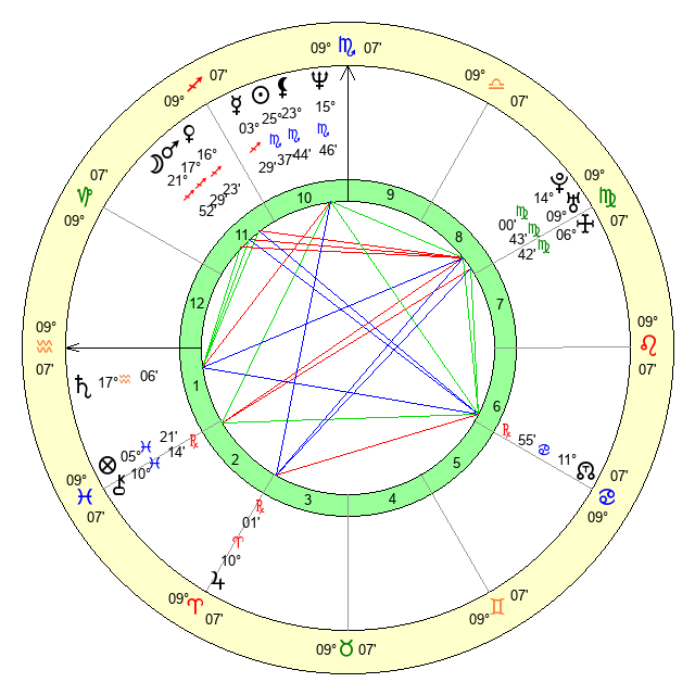 | Pluto | 14 Virgo 1 | 1 Aquarius 39 | 13 Virgo 56 |