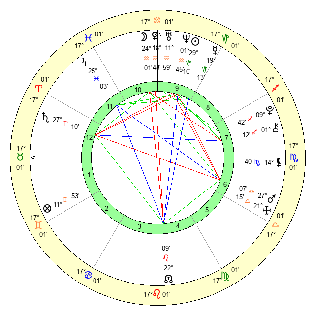 | Moon | 24 Aquarius 3 | 6 Libra 37 | 6 Aquarius 2 |