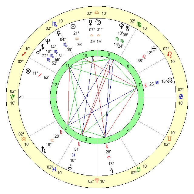| Neptune | 14 Scorpio 31 | 0 Aries 9 | 16 Scorpio 44 |