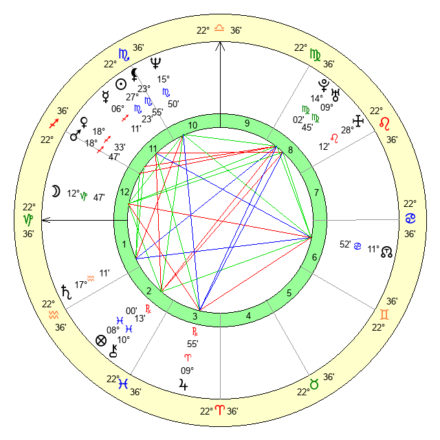 | Pluto | 14 Virgo 2 | 1 Aquarius 41 | 13 Virgo 55 |