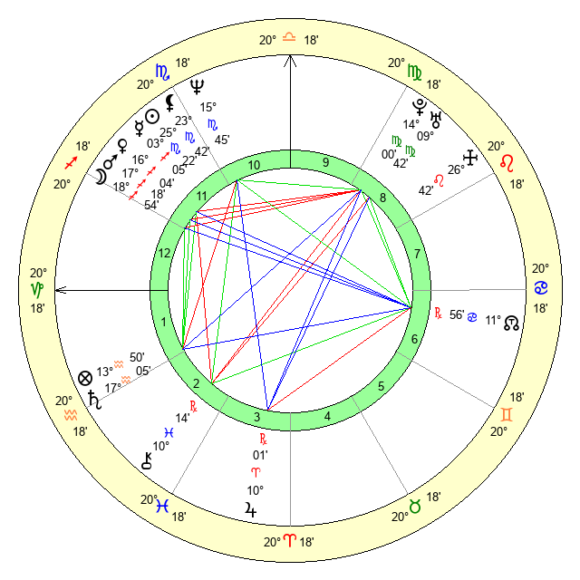 | Pluto | 14 Virgo 1 | 1 Aquarius 39 | 13 Virgo 57 |