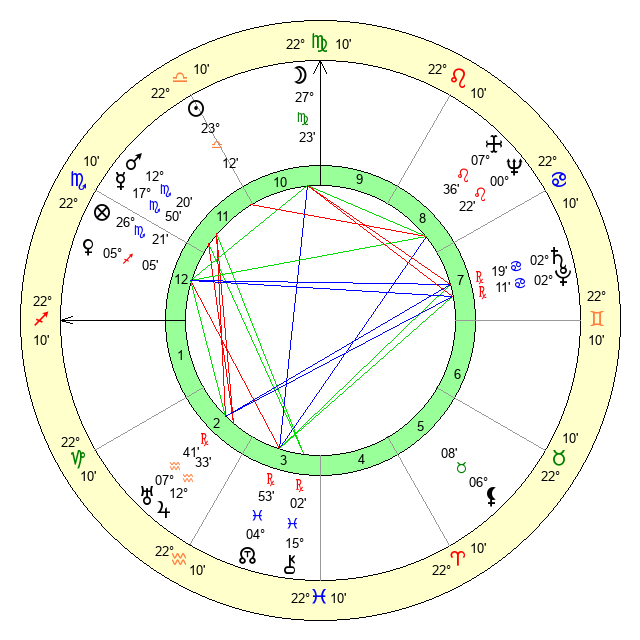 | Moon | 27 Virgo 25 | 24 Aries 1 | 8 Libra 7 |