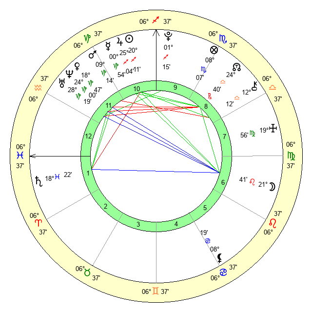 | Moon | 21 Leo 41 | 0 Libra 27 | 25 Virgo 19 |