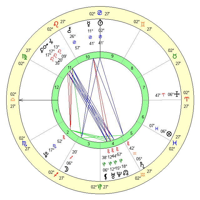 | Mercury | 11 Cancer 41 | 27 Cancer 10 | 1 Virgo 45 |