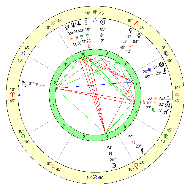 | Saturn | 0 Aries 55 | 14 Pisces 5 | 2 Aries 41 |