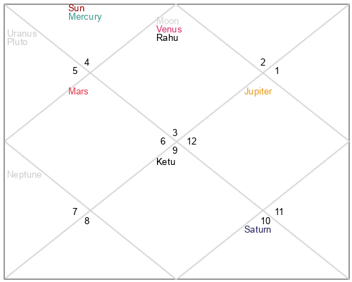| Rahu | 20 Cancer 6 | 20 Pisces 55 | 16 Cancer 49 |