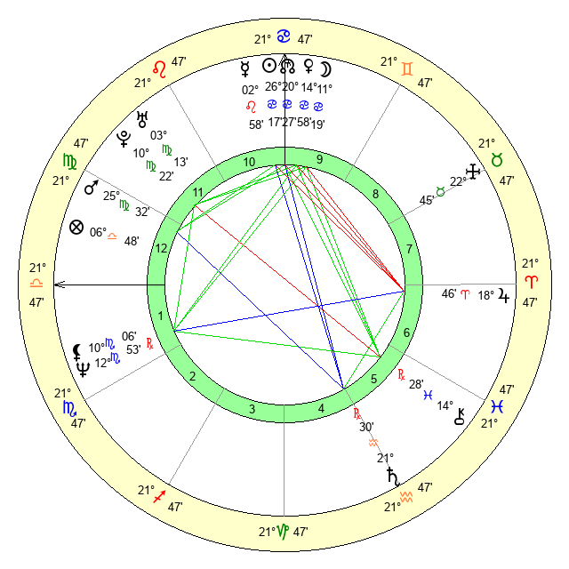 | Moon | 11 Cancer 13 | 19 Taurus 31 | 16 Libra 51 |