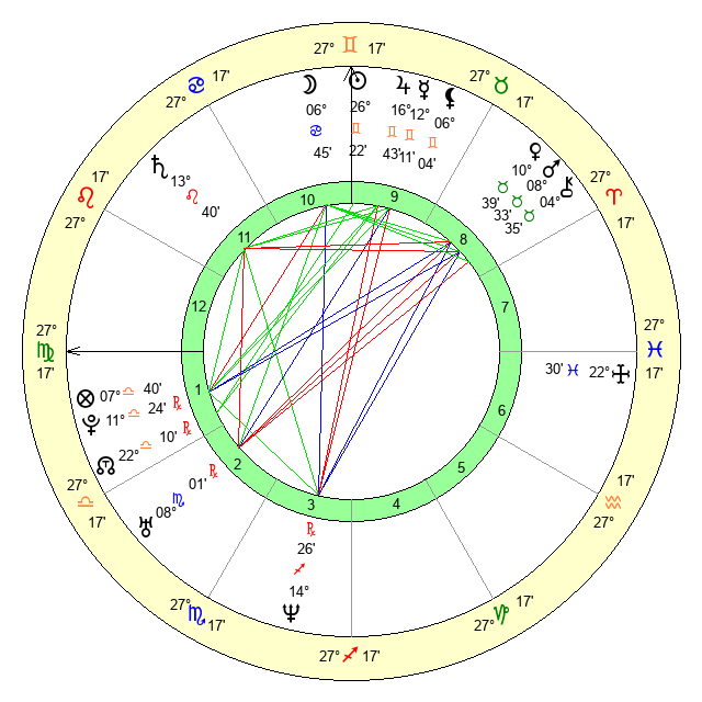 | Neptune | 14 Sagittarius 26 | 2 Aries 5 | 13 Sagittarius 28 |