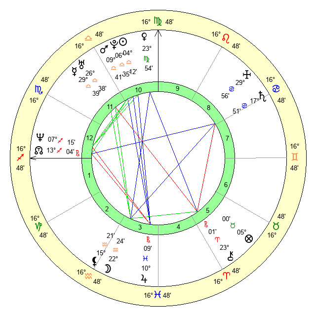 | Venus | 23 Virgo 54 | 10 Virgo 1 | 27 Scorpio 45 |