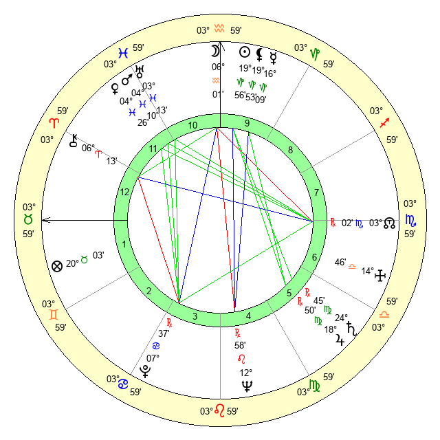 | Saturn | 25 Virgo 28 | 15 Pisces 15 | 19 Virgo 17 |