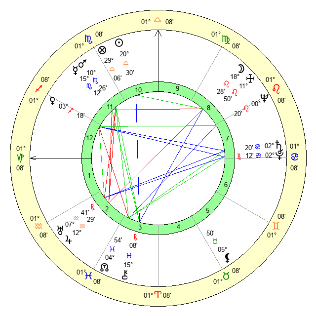 | Mars | 10 Scorpio 26 | 21 Cancer 39 | 1 Aquarius 55 |