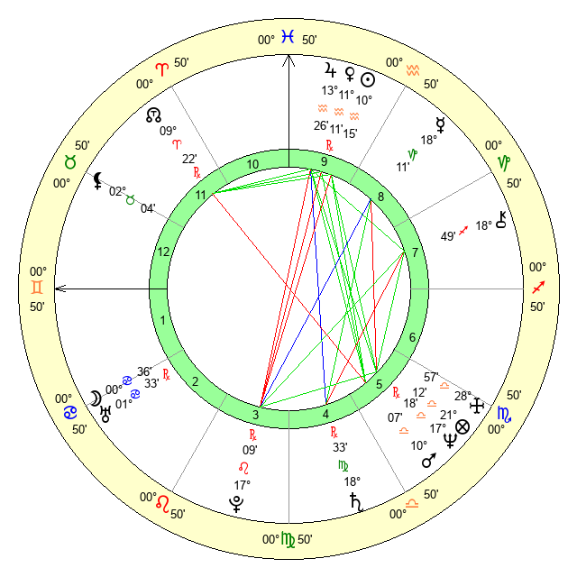 | Jupiter | 13 Aquarius 21 | 11 Gemini 18 | 29 Aquarius 58 |