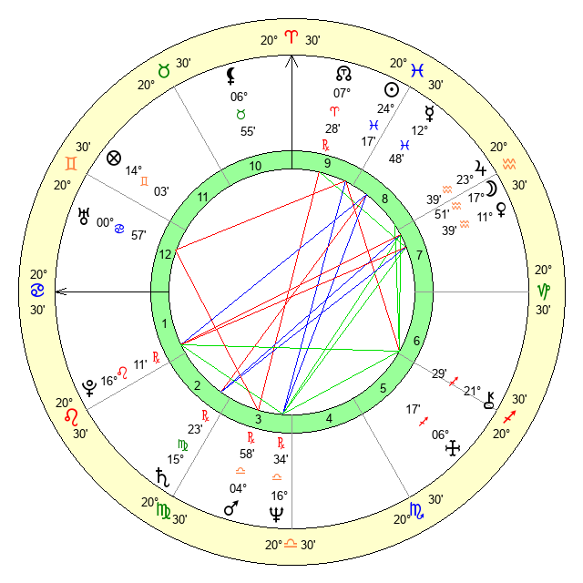 | Mars | 4 Libra 58 | 19 Cancer 8 | 25 Virgo 43 |