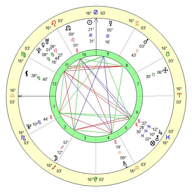 | Sun | 21 Cancer 31 | 22 Cancer 16 | 22 Virgo 7 |