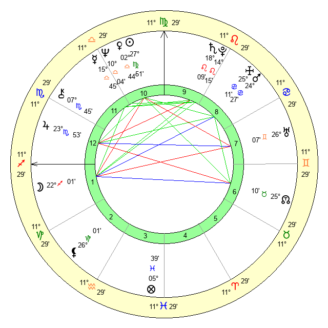 | Moon | 22 Sagittarius 10 | 27 Virgo 27 | 1 Scorpio 19 |