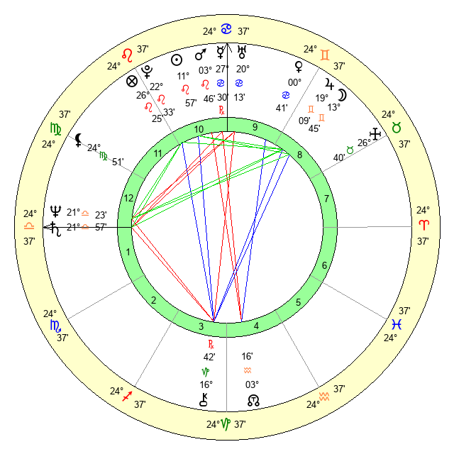 | Mercury | 27 Cancer 30 | 6 Leo 27 | 14 Scorpio 58 |