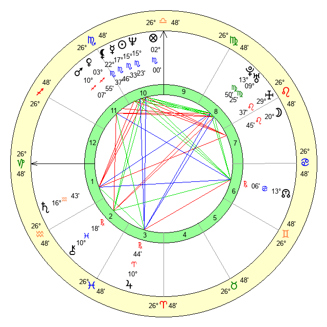 | Neptune | 15 Scorpio 24 | 29 Pisces 38 | 17 Scorpio 23 |