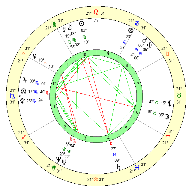 | Sun | 3 Virgo 13 | 3 Virgo 42 | 3 Libra 22 |