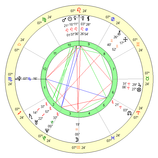 | Venus | 11 Leo 37 | 9 Cancer 56 | 28 Virgo 42 |
