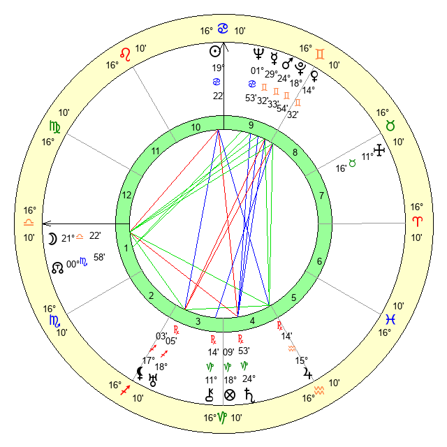 | Sun | 19 Cancer 22 | 20 Cancer 36 | 19 Scorpio 23 |