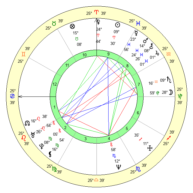 | Mars | 14 Pisces 25 | 23 Cancer 11 | 2 Taurus 47 |