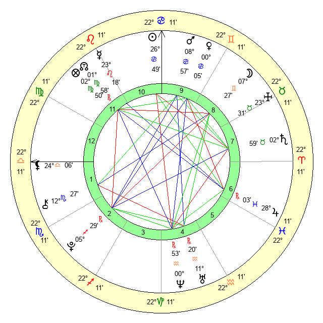 | Sun | 26 Cancer 49 | 27 Cancer 16 | 22 Leo 40 |
