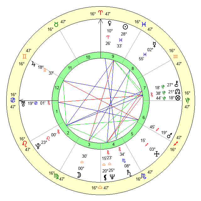 | Venus | 10 Aries 27 | 4 Aries 45 | 7 Cancer 19 |