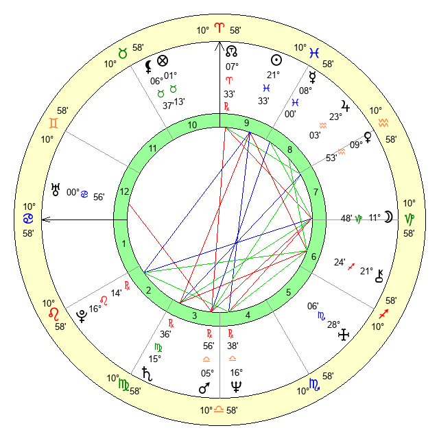 | Moon | 11 Capricorn 48 | 4 Virgo 33 | 28 Virgo 1 |