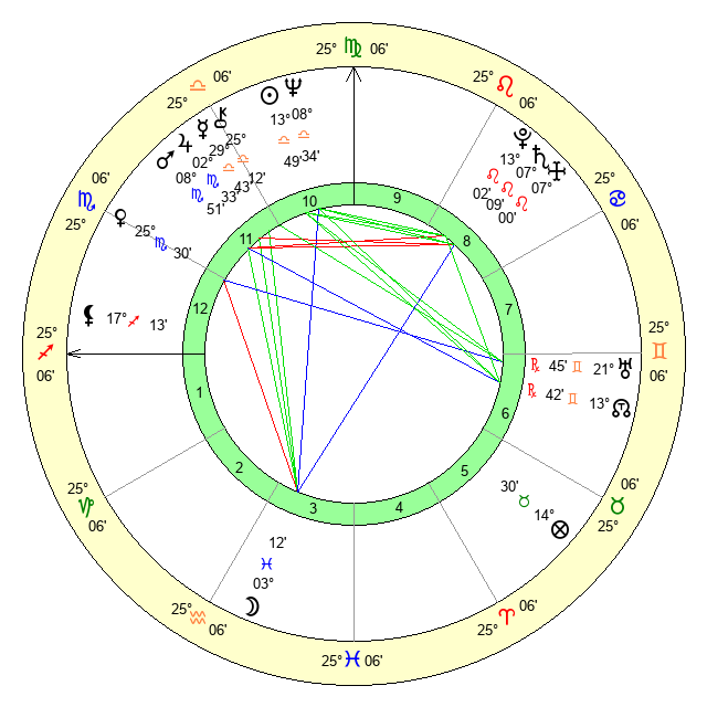 | Venus | 25 Scorpio 30 | 22 Virgo 21 | 22 Scorpio 29 |