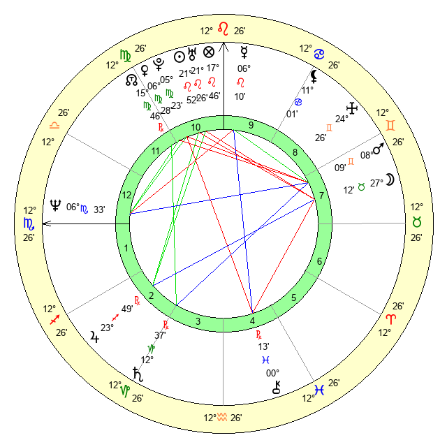 | Pluto | 5 Virgo 23 | 2 Aquarius 6 | 7 Virgo 26 |