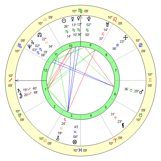| Venus | 12 Virgo 36 | 0 Virgo 13 | 6 Sagittarius 26 |