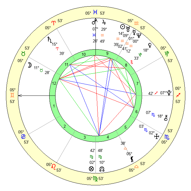 | Neptune | 0 Aquarius 12 | 28 Pisces 2 | 1 Aquarius 7 |